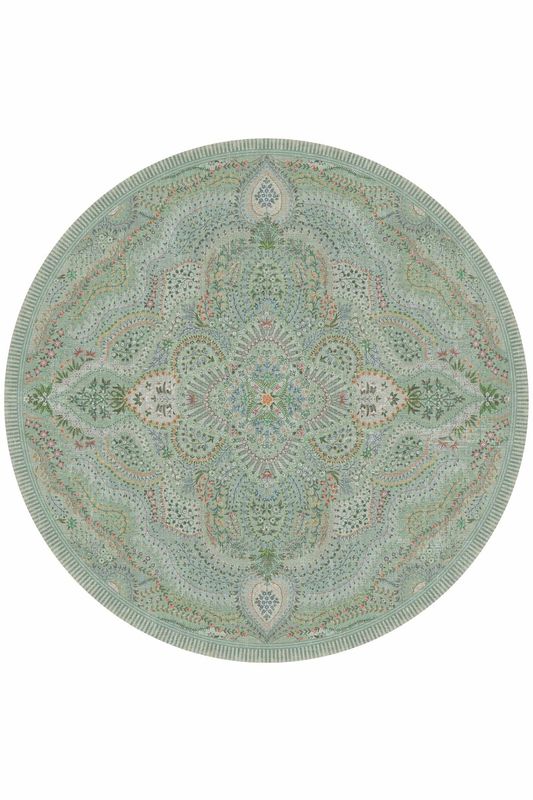 Het kleed is gemaakt van 70% katoen en 30% acryl. Niet geschikt voor de wasmachine, maar eenvoudig schoon te maken met water en zeep (zonder bleek).